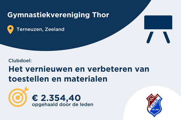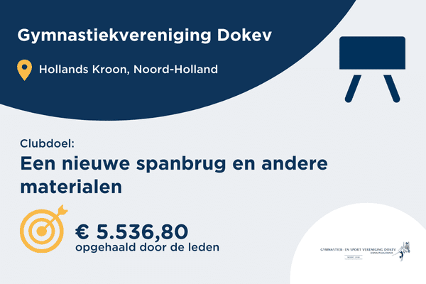 Met de opbrengst koop je bijvoorbeeld nieuwe airtracks, organiseer je extra jeugdkampen of schitteren jouw jeugdleden in nieuwe gympakken.