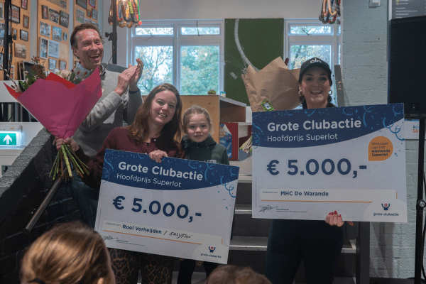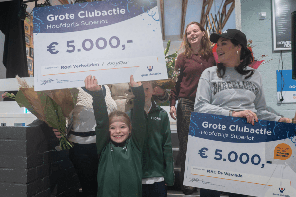 Zaterdag 15 november is de superlot-hoofdprijs uitgereikt in Oosterhout, Noord-Brabant. Het bedrijf Easyflex Software kocht tijdens de Grote Clubactie een Superlot om hockeyclub MHC De Warande uit Oosterhout te steunen. Niet wetende natuurlijk dat ze daarmee hét winnende Superlot in handen hadden. Het bedrijf wint hiermee maar liefst €5.000! Het Grote Clubactie Team reisde af naar de club en lokte medewerkers van Easyflex Software met een smoesje naar de vereniging. Eenmaal daar volgde de ene verrassing na de andere: ook de vereniging die het winnende Superlot verkoopt, wint namelijk €5.000 voor de clubkas. Dubbel feest!
